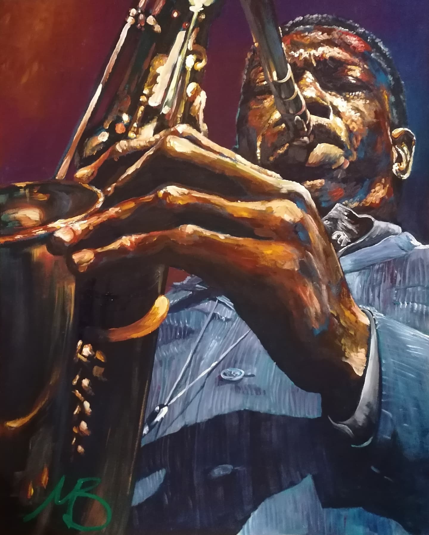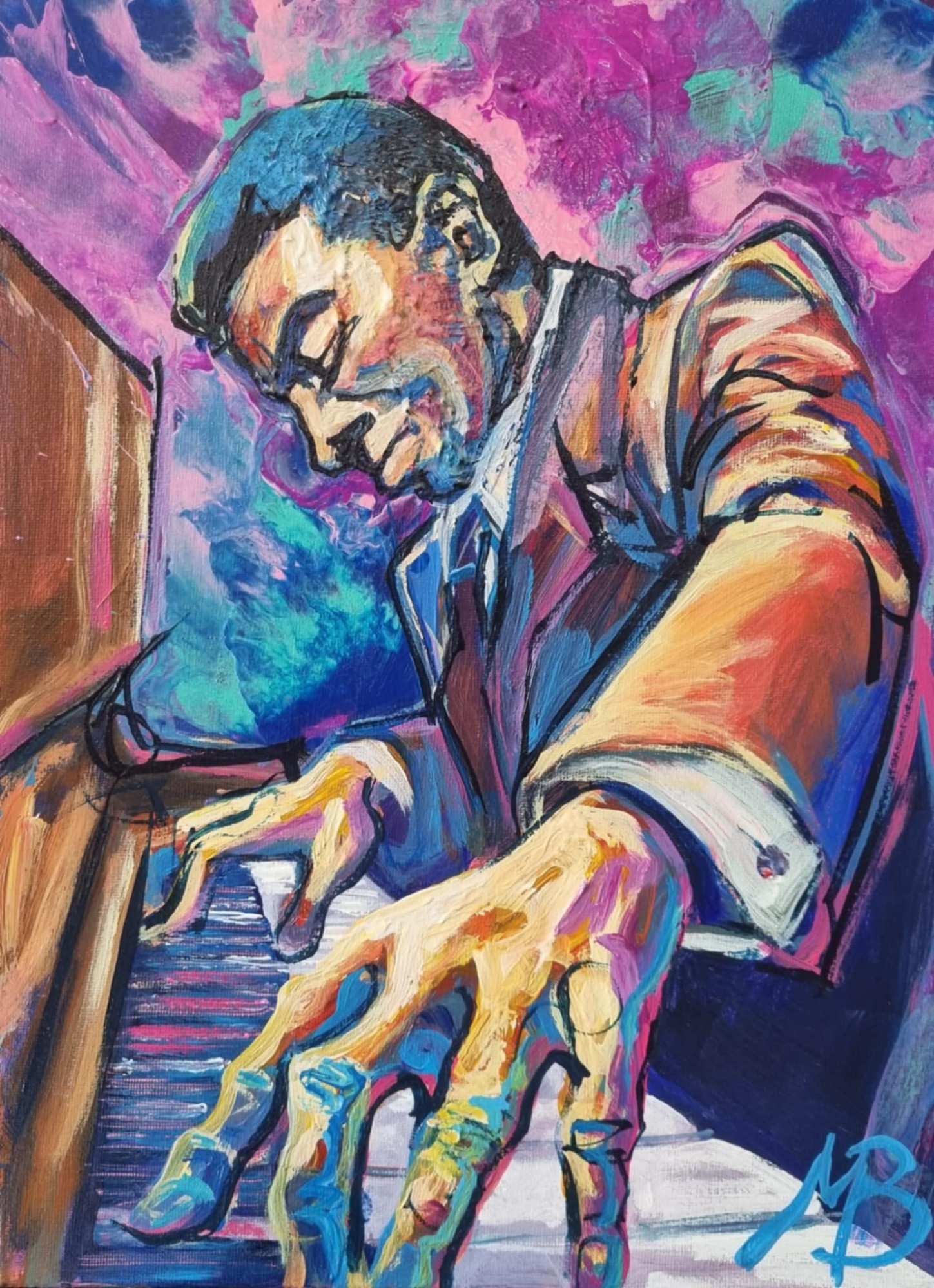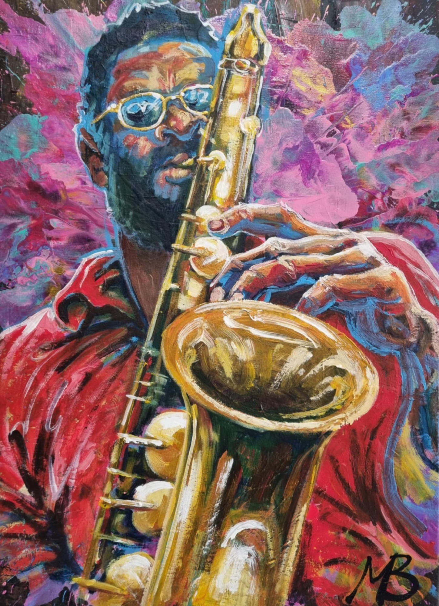 Mark is an expressive figurative artist, working with instinct and immediacy. Through bold, intuitive marks and a use of vivid colour, his work radiates energy, light, and power.