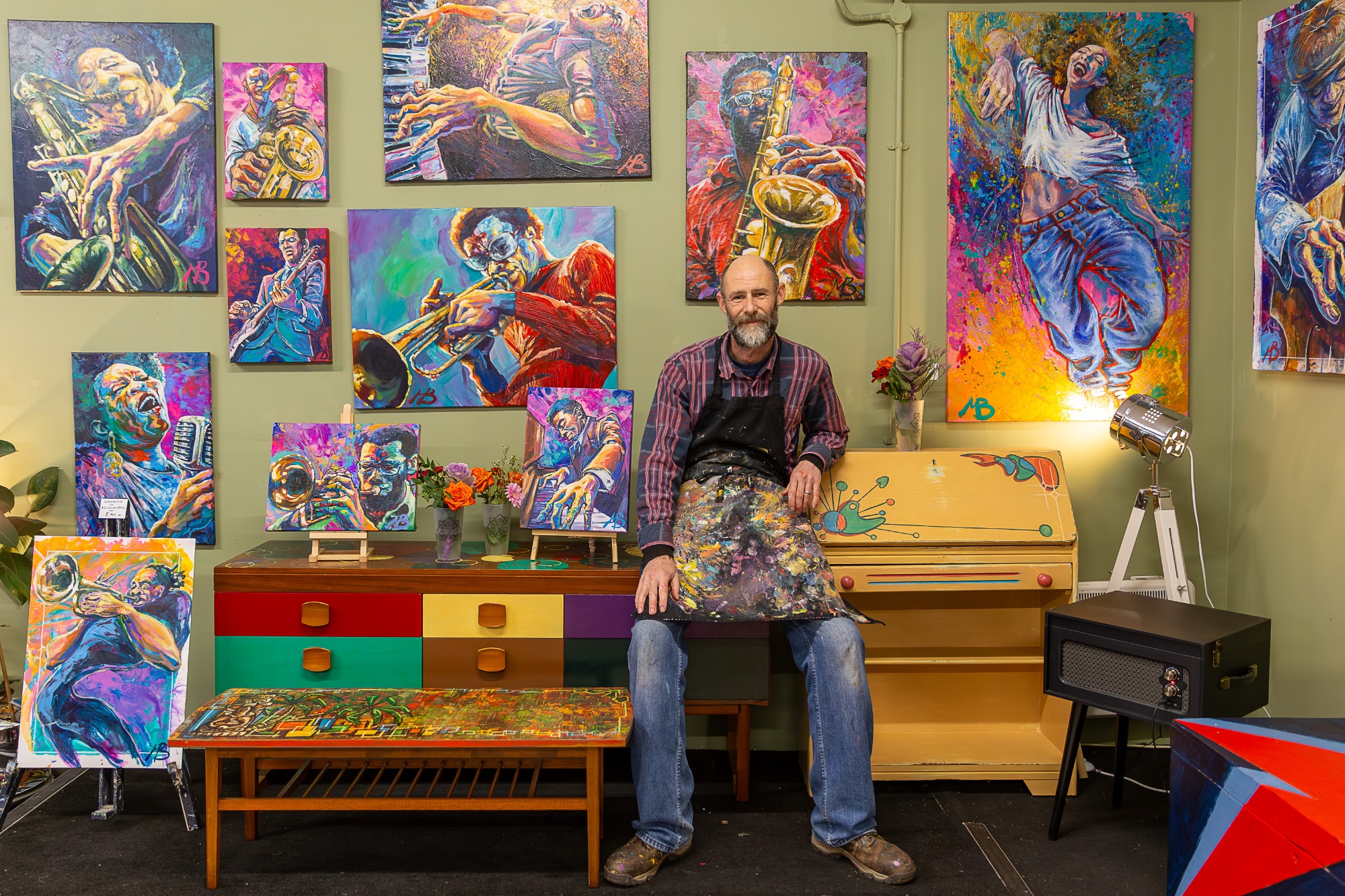 Mark Bell is a painter whose vibrant work celebrates colour, movement, and expressive form.
